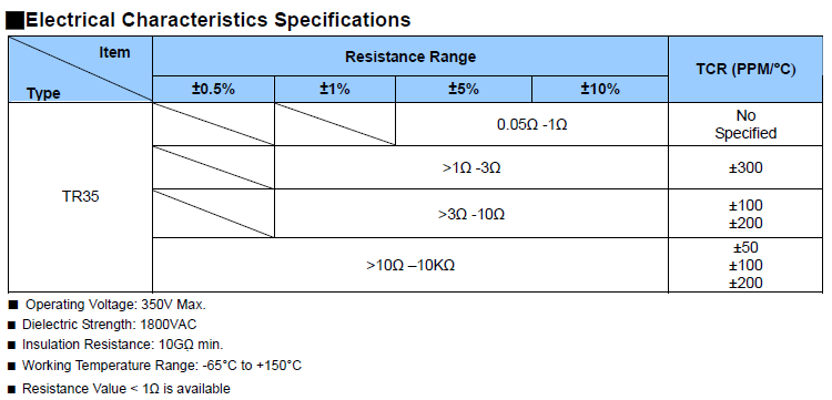 阻值范圍從 1 R - 10KR